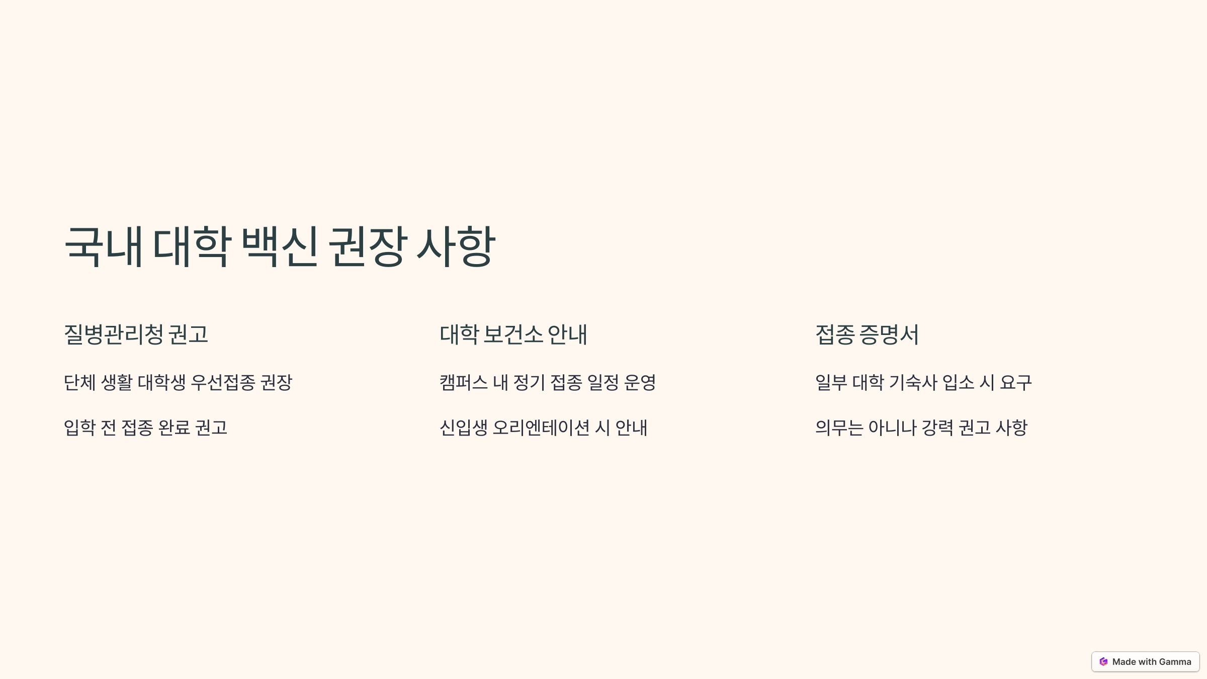 대학별로 정책은 상이하지만, 최근 대학생 대상 감염 예방의 중요성이 높아지며 백신 접종 권고 또는 자체 캠페인을 시행하는 학교가 점점 늘고 있습니다.