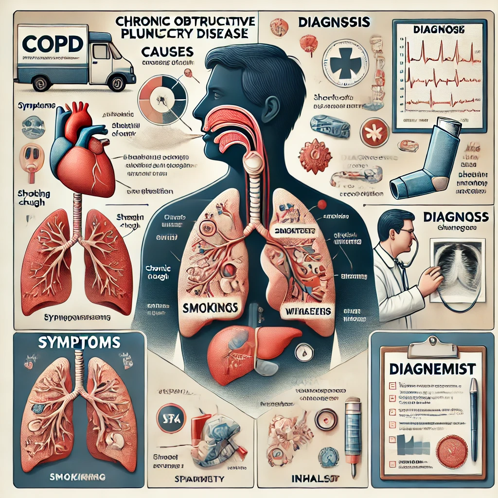 만성폐쇄성폐질환(COPD)은 폐의 기도가 좁아져서 공기의 흐름이 제한되는 만성 호흡기 질환입니다. 주로 흡연, 대기 오염, 유전적 요인 등으로 인해 발생하며, 점진적으로 진행되는 특징이 있습니다. COPD는 만성 기관지염과 폐기종을 포함하며, 이 두 가지 상태가 동시에 나타날 수 있습니다.