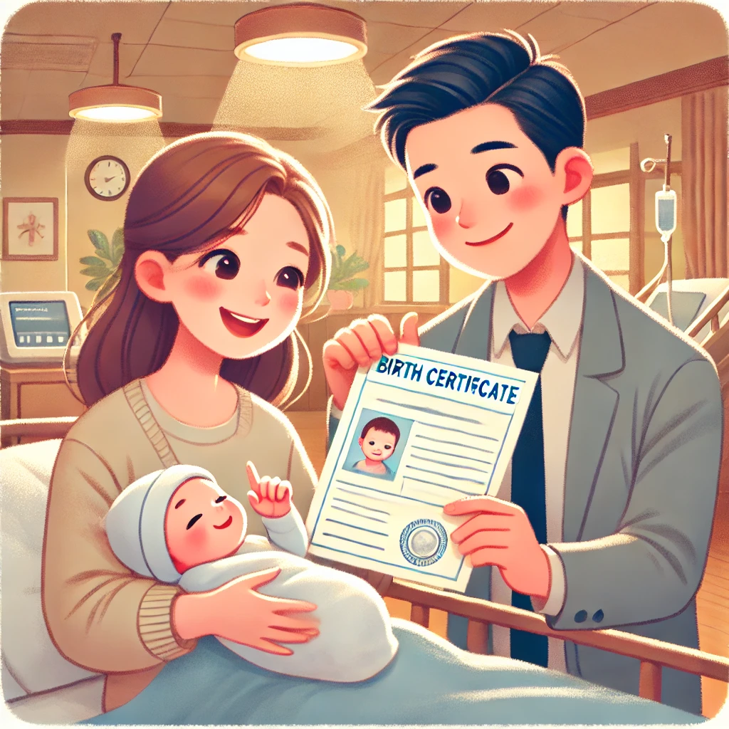 - 출생증명서 원본 1부: 아기가 태어난 병원 또는 해당 기관에서 발급한 공식 출생증명서입니다.