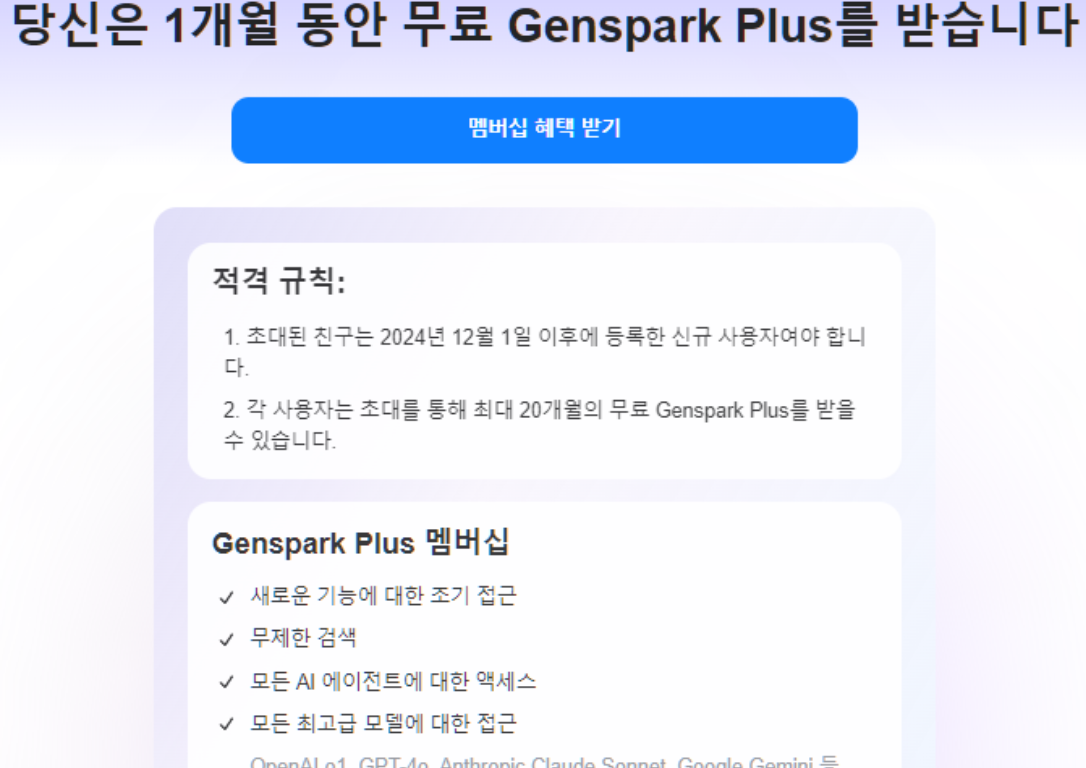 무료 이용 혜택: 최대 20개월 동안 Genspark Plus를 무료로 이용할 기회